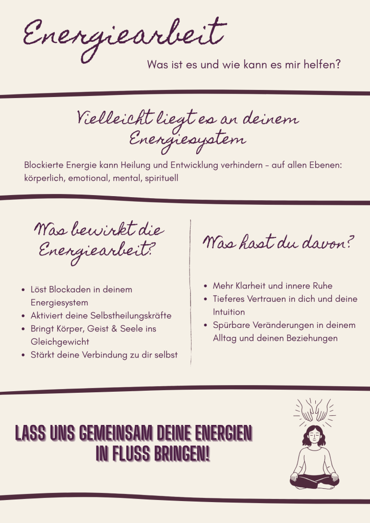 Vielleicht liegt die Ursache nicht im Außen, sondern in deinem Energiesystem. Wenn unsere Energie blockiert ist, geraten Körper, Geist und Emotionen aus dem Gleichgewicht. Heilung, Klarheit und Entwicklung werden dadurch gehemmt.